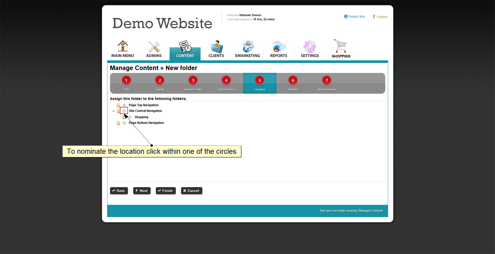 12. Click Next to specify Location