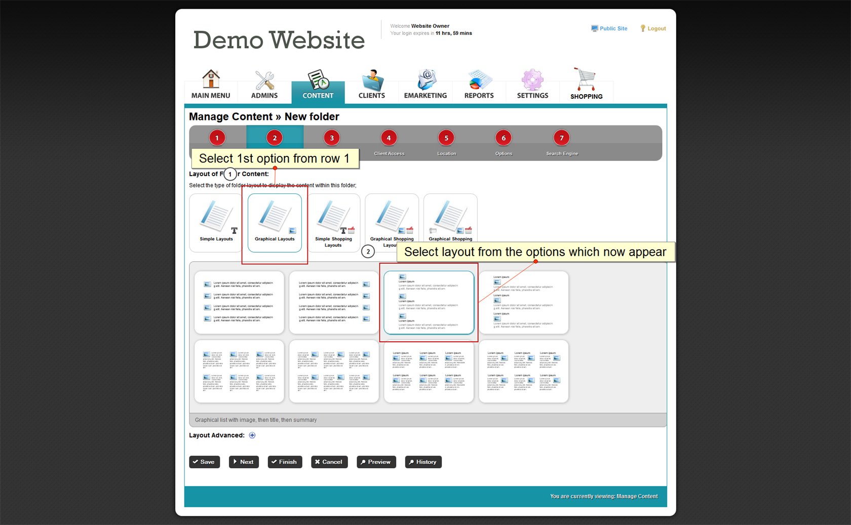4. Click on the first row of layout icons to select the main style of folder layout