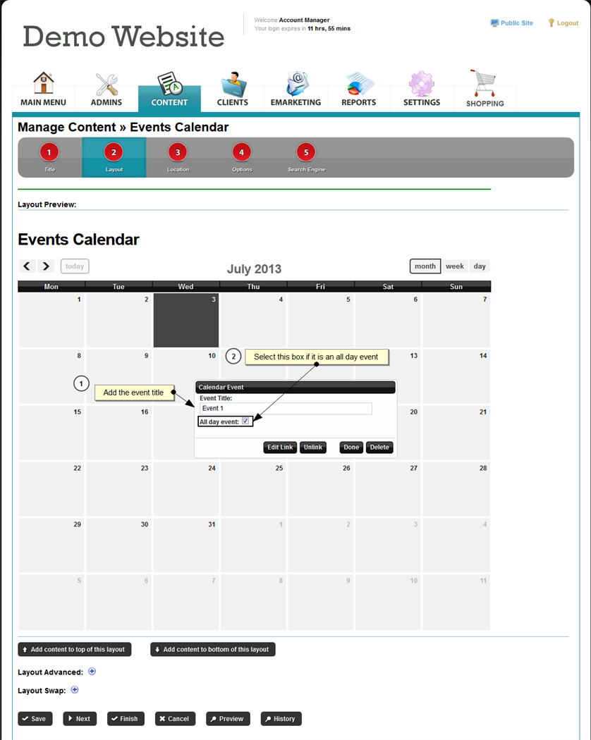 This can be used for events and internal rosters for your team.This is a great way to show users upcoming events for your organisation. You can link events to your latest news page to give users more information. |