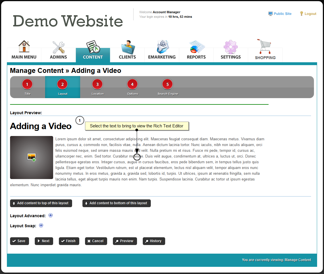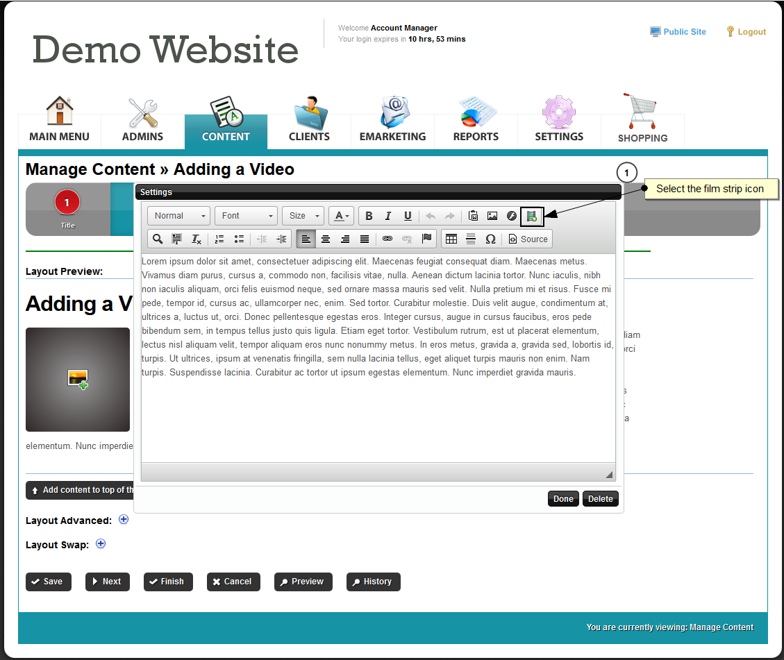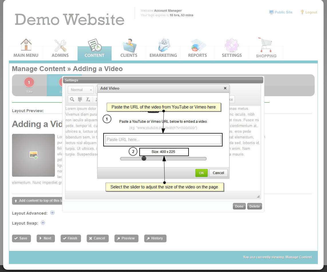 This guide will show you how to embed a YouTube or Vimeo video into an inner content page of the website.