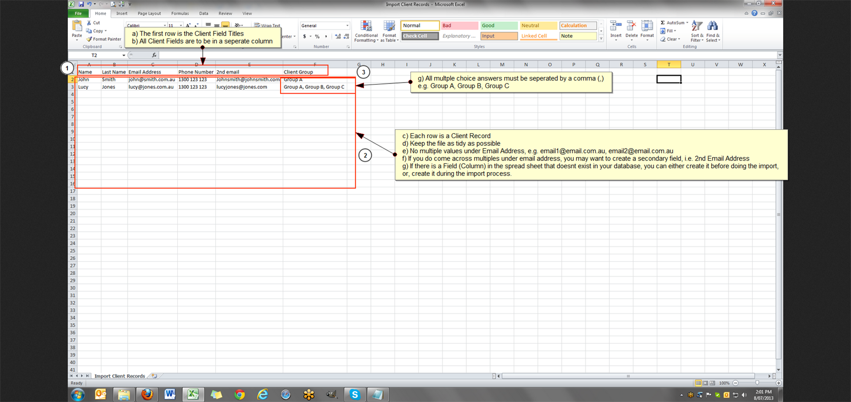 - The Client List must be saved as an Excel spread sheet .csv file.