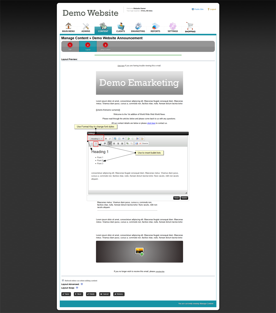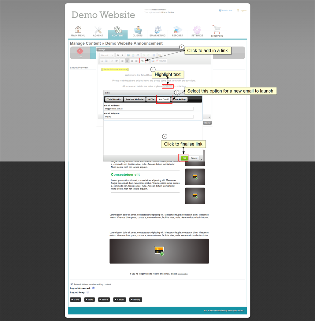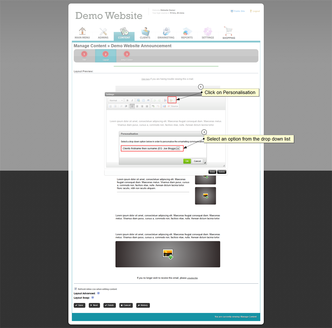 This guide will show you how to edit eMarketing communications already created in the system; add in personalised salutations, and style the fonts.