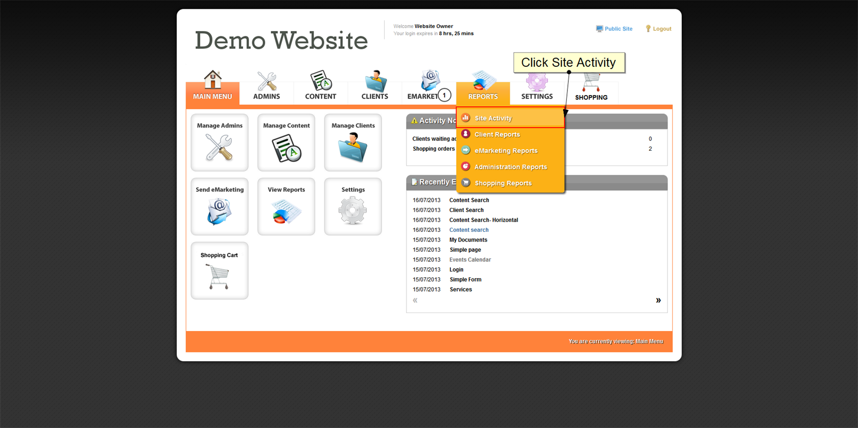 To view form submissions per form go to Reports and click the Site Activity tab. Click on Form submission sthen browse for and select a form to view all form submission.
