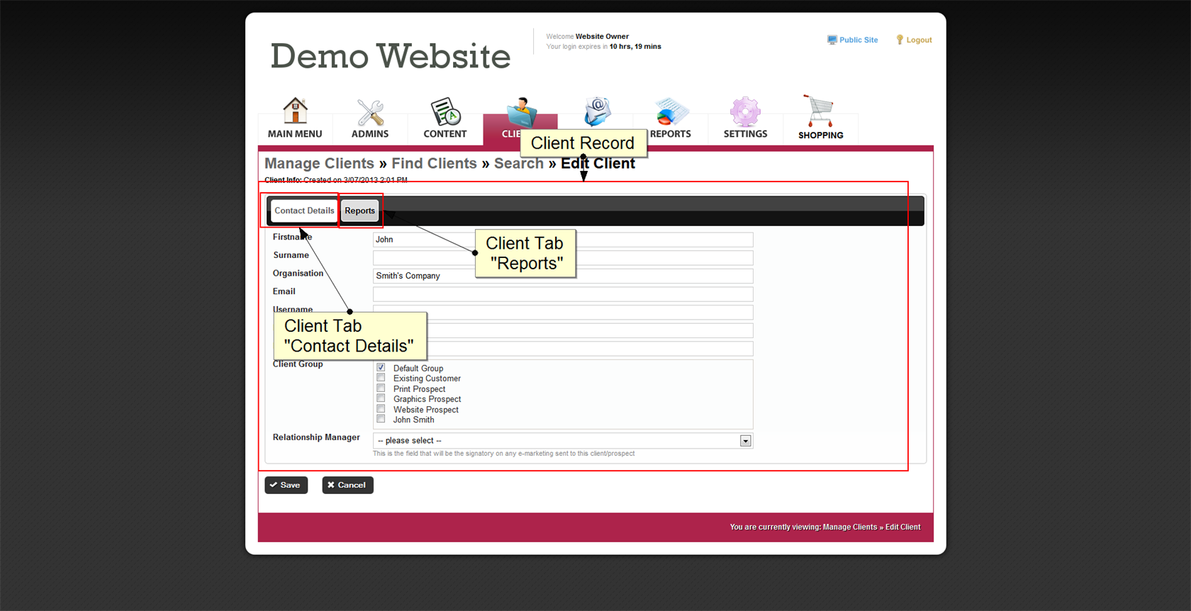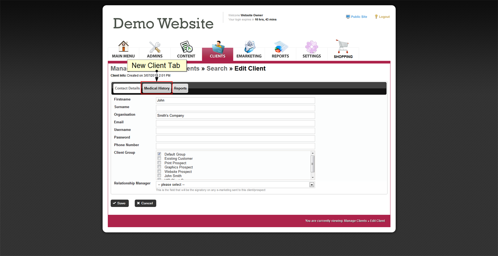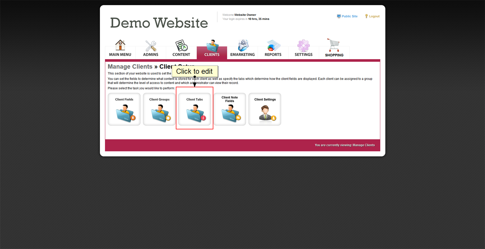 This guide will show you how to manage the Client Tabs area of your website Client Database. Client Tabs are a way to organise Client Fields into logical categories that apply to your business. Client Tabs apply to the Administration area only and does not impact the front-end of the website.