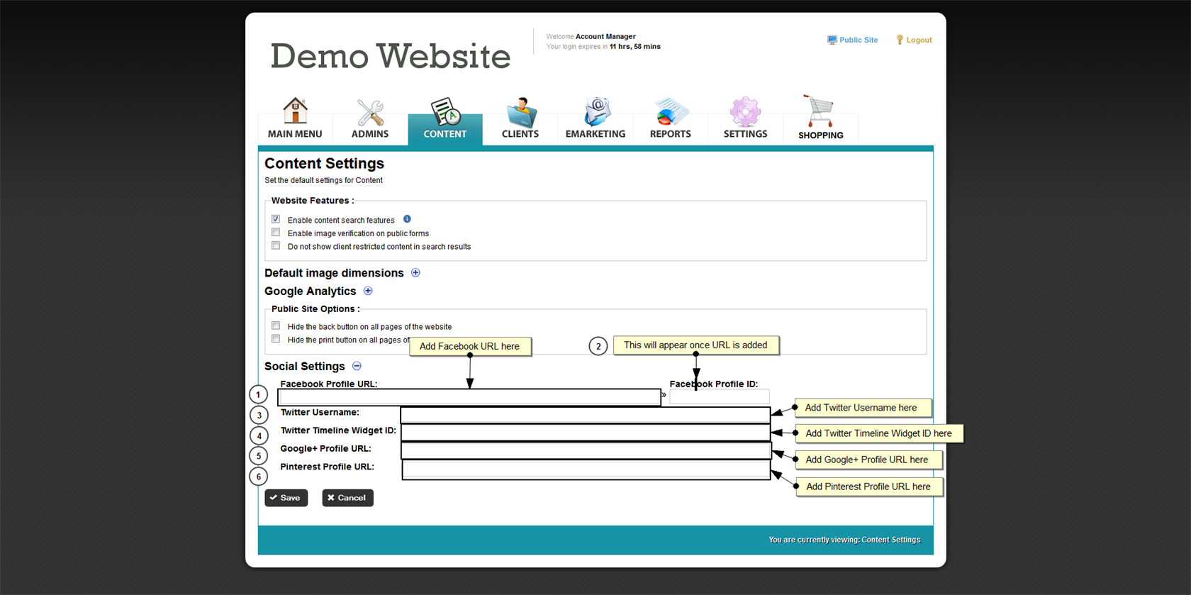 This instructions include how to add in information for the social media icons on content pages |