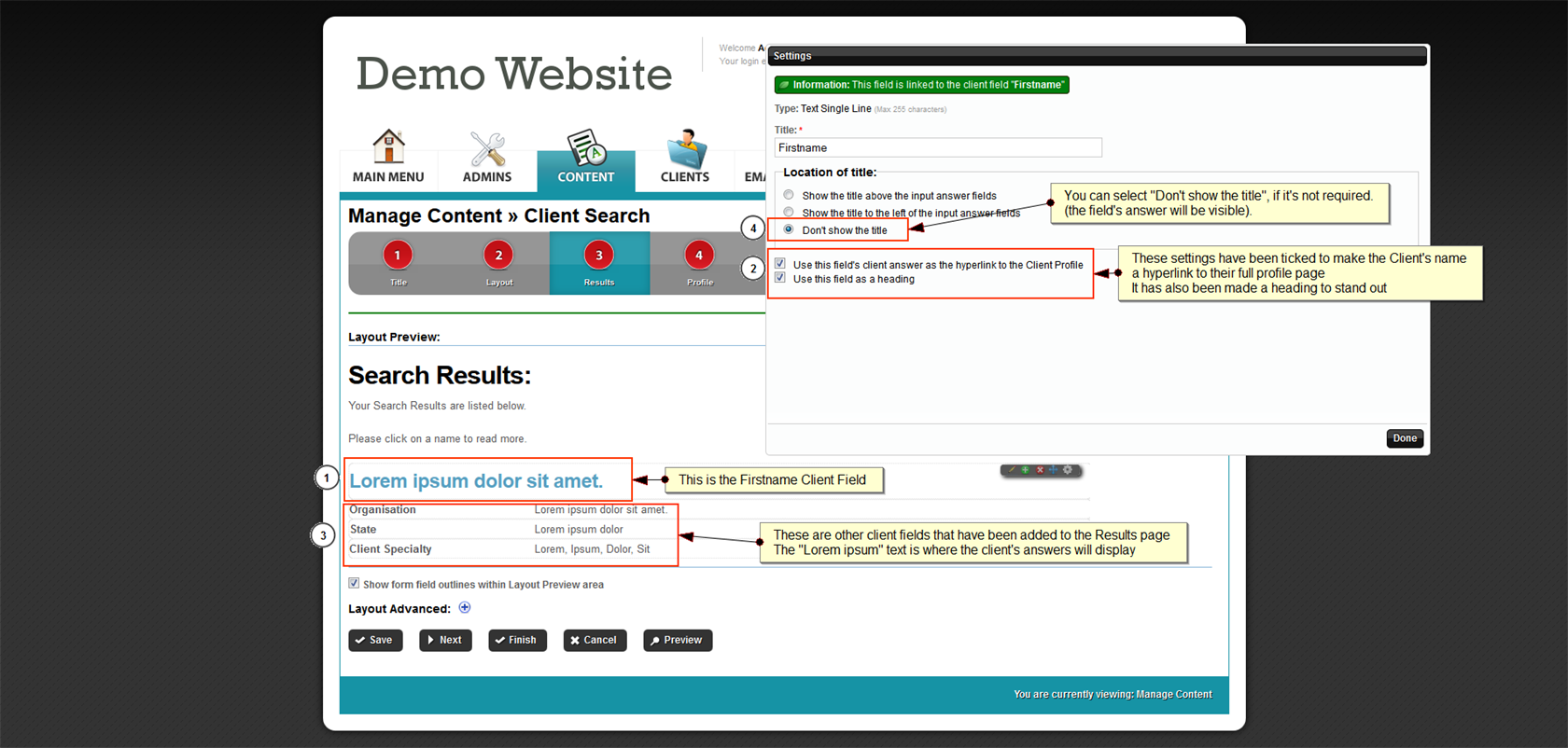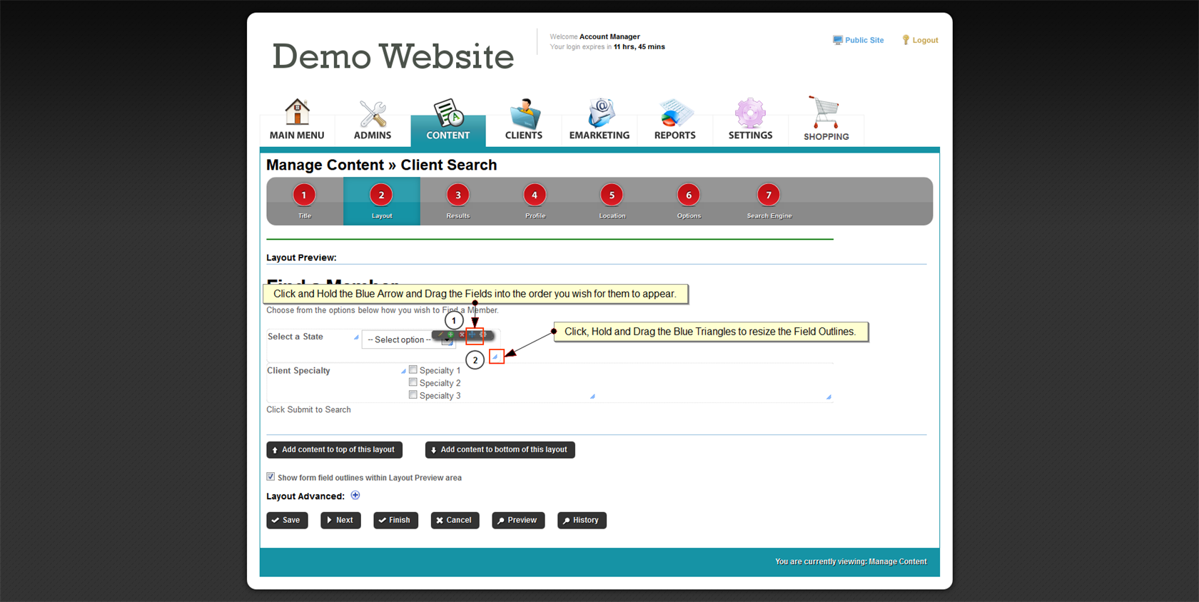 Client Search Forms are used to give your website users the ability to search for Clients that are in your website database. Examples of Client Search Forms include, Find a Member, Find a Landscaper, Find a Job Seeker and so on. |