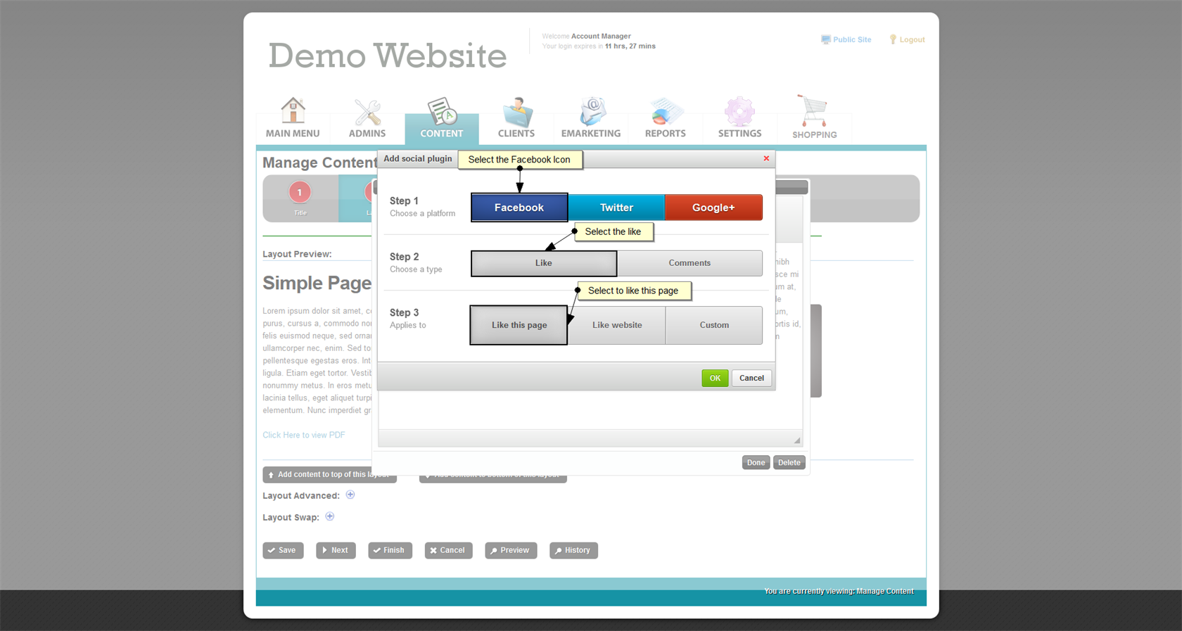 Ensure Social Settings have been set up please see Edit Content Settings.