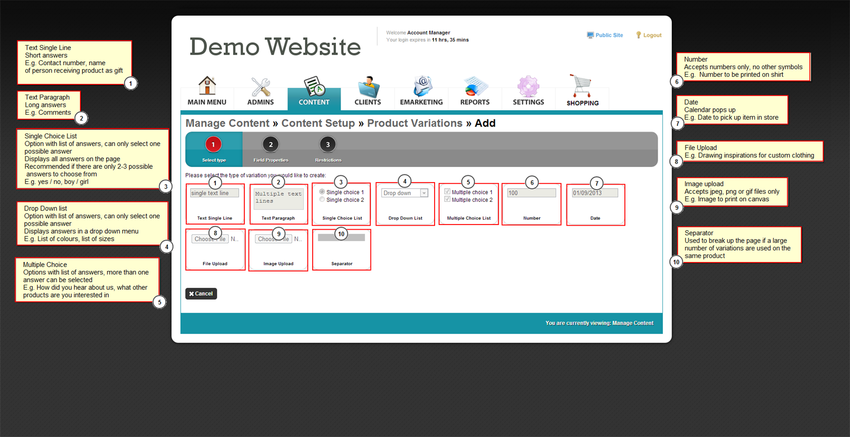 e.g. Variations can be used for a t-shirt product that has multiple sizes & colours, or a seminar that has multiple attendance dates.