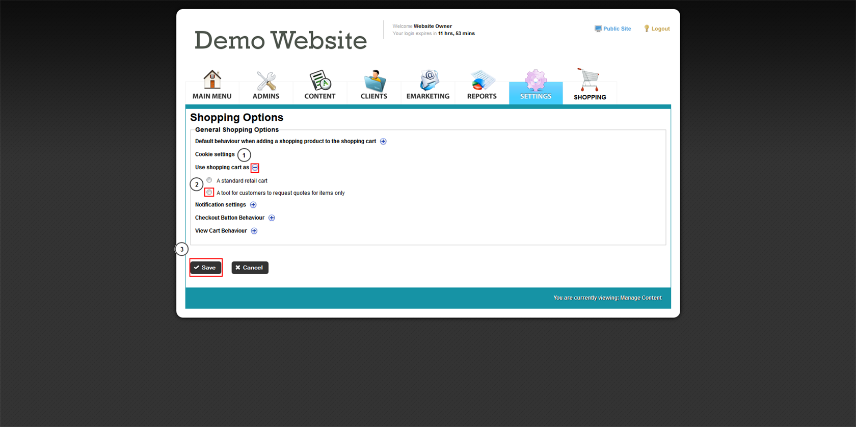 Follow the instructions below in order to set up a non transactional shopping cart.