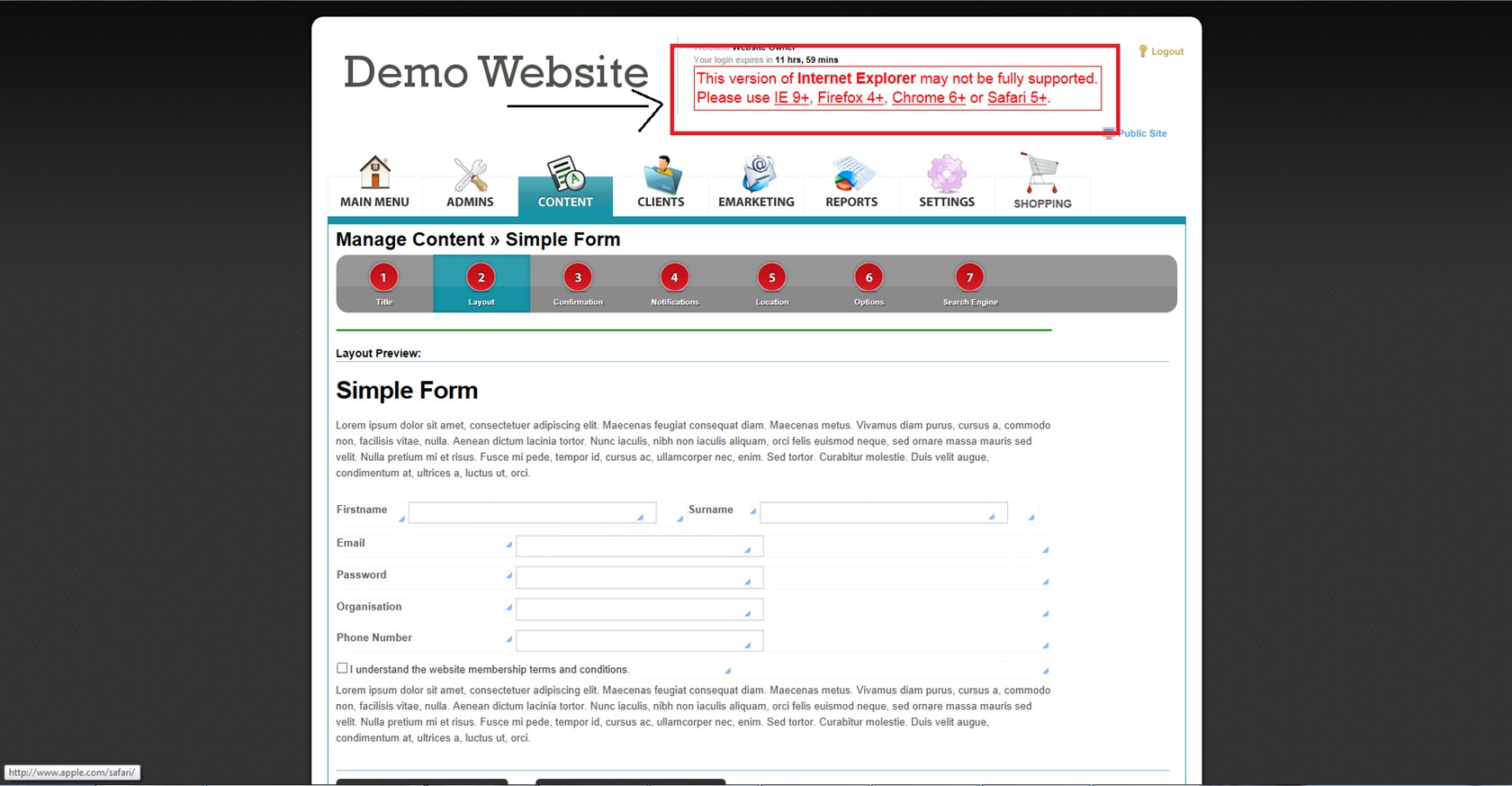 Using an older browser will not work correctly with your website's admin area and you will know that the version you are using is incompatible as a notification will appear. It is also recommended to keep your browser up to date for added secuirty and the most up to date features.