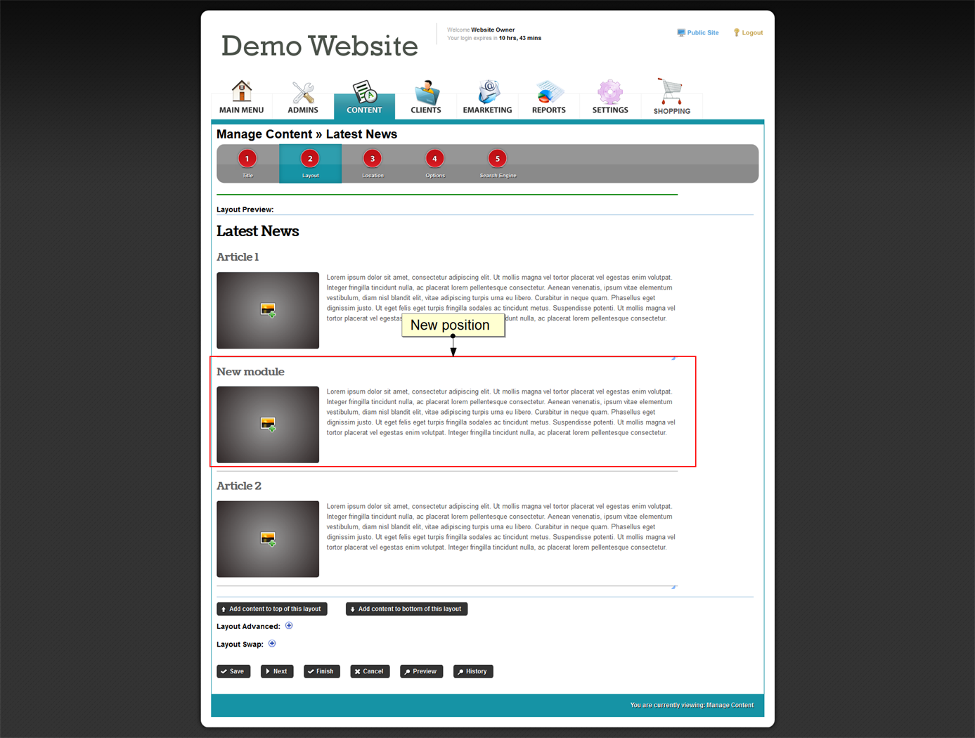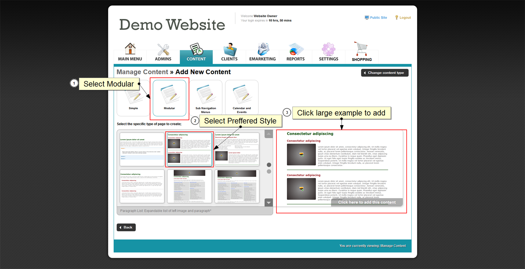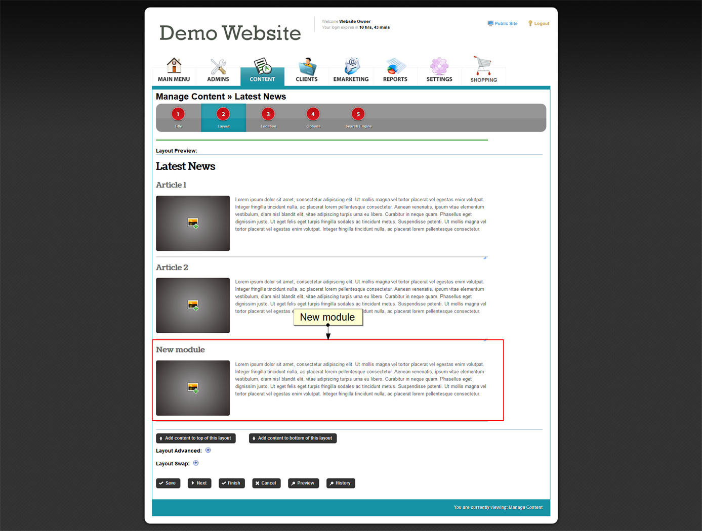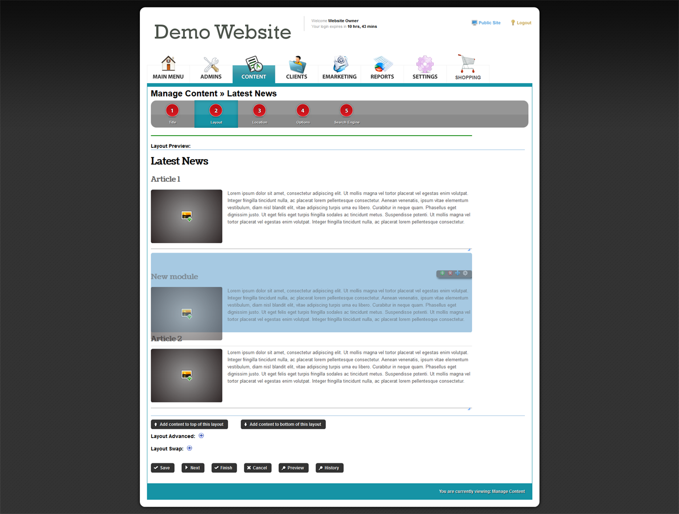 Modular pages are great to break up large text areas, display Latest News or Events, and can be used as landing pages by presenting some teaser text that can link through to additional pages. |